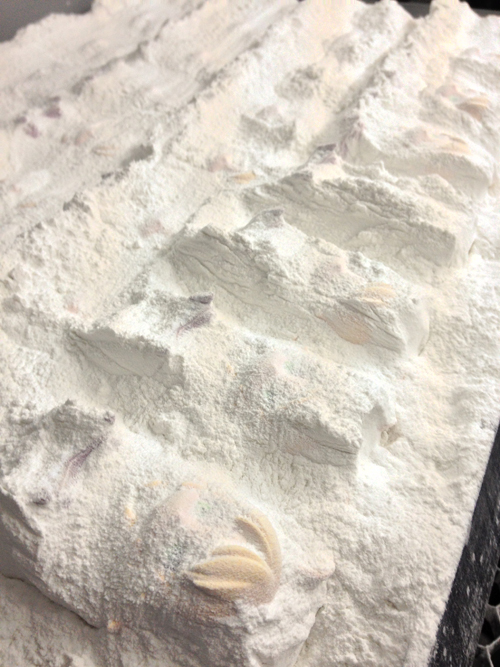 1.業務用3Dプリンターで造形された直後は、石膏に埋まっています。