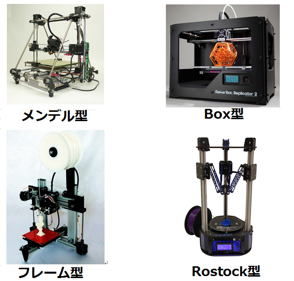 見た目の違いではメンデル型フレーム型ボックス型Rostock型の4種類あり各々個性的な形状をしています。またそれぞれの形には一長一短があります。