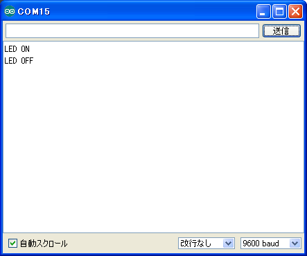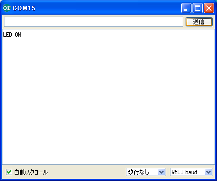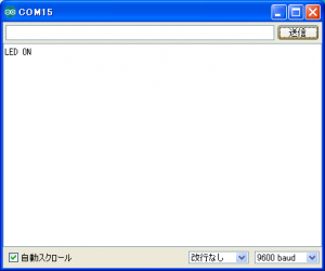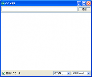 ツール>シリアルモニタ より シリアルモニタを起動する。