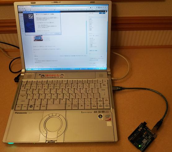 ⑤PCとArduino Uno R3を付属のUSBケーブルで繋ぐ。